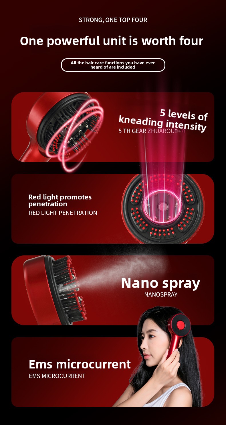 Functions: Kneading massage, EMS microcurrent, red light therapy, optional spray